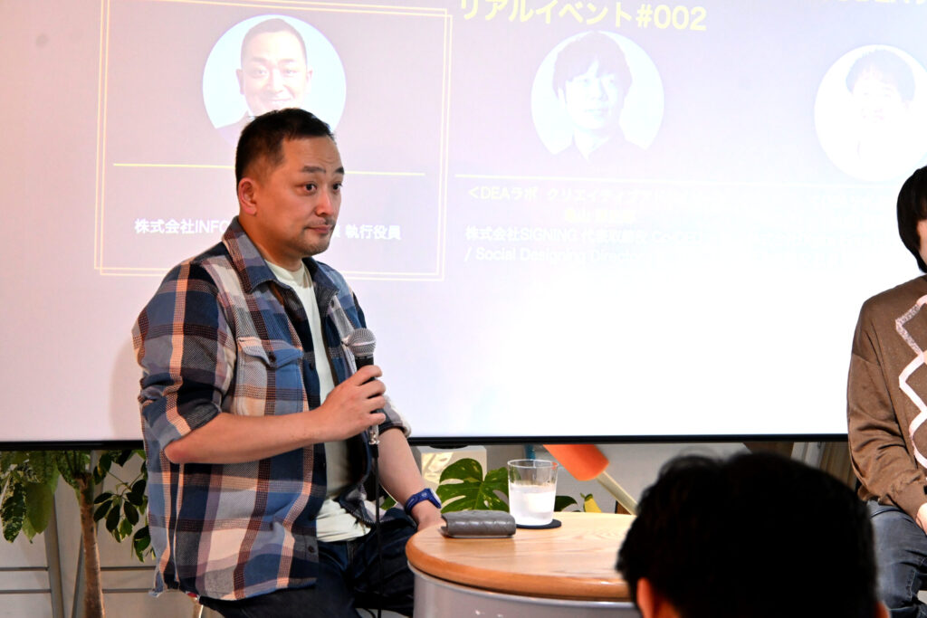 ゲストに、日本のみならず世界中でモバイルバッテリーシェアリング「ChargeSPOT」を展開する、株式会社INFORICHの梶 桃郎氏をお迎えし、DEA代表取締役社長の山田耕三を中心に、株式会社SIGNING 亀山淳史郎氏とともに「社会実装とゲーミフィケーション」の可能性について語り合いました。